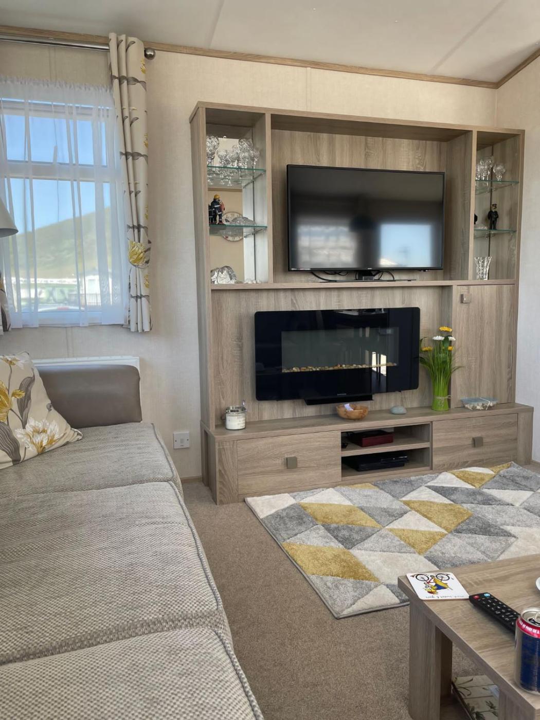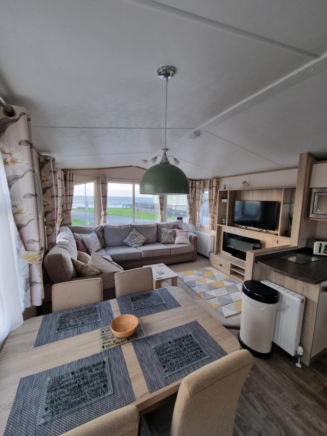 Mobile Home. This mobile homes special feature is the fireplace. Featuring a private entrance, this mobile home consists of 1 living room, 2 separate bedrooms and 1 bathroom with a shower and a hairdryer. Guests will find a stovetop, a refrigerator, kitchenware and an oven in the kitchen. The mobile home also offers a barbecue. Boasting a terrace with sea views, this mobile home also provides a tea and coffee maker and a flat-screen TV with streaming services. The unit offers 3 beds.